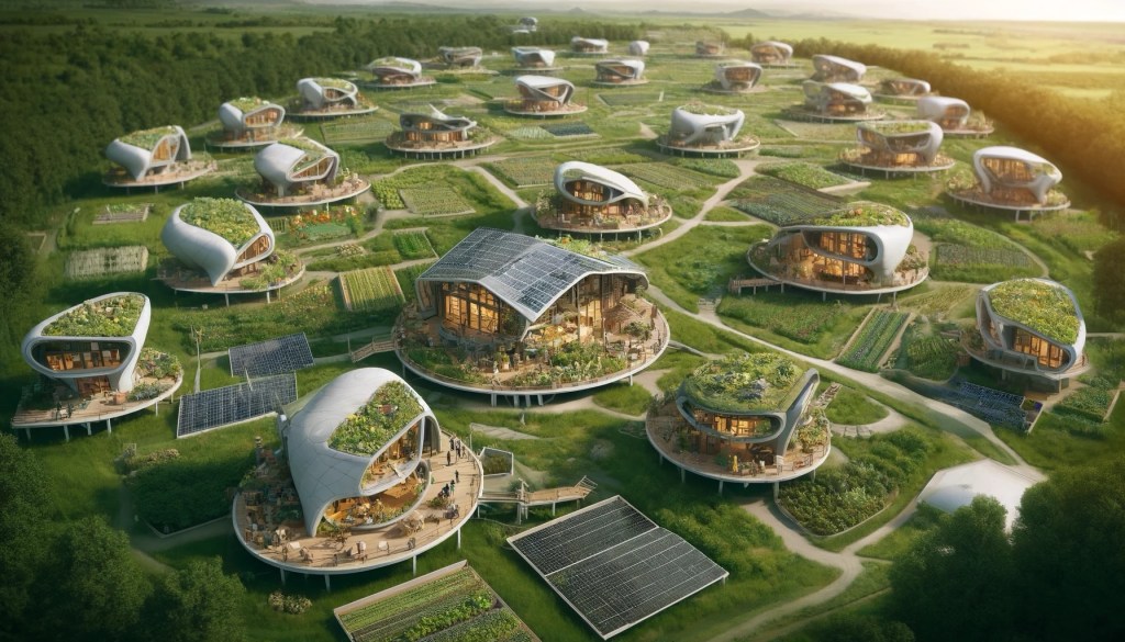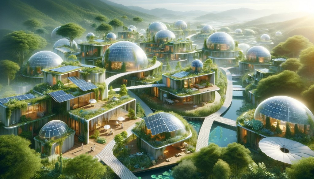 - Innovation and Technology: I would likely focus on incorporating advanced technologies that enhance energy efficiency and sustainability. This includes solar panels, wind turbines, and innovative insulation materials. Designing systems for water collection and purification, and waste management would also be crucial.