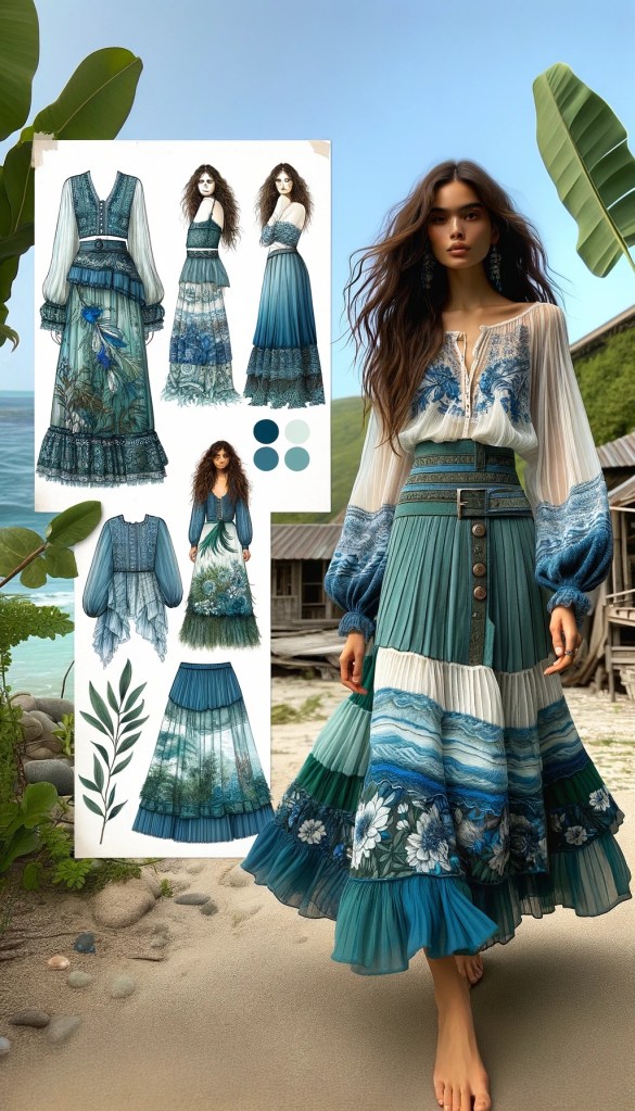 - Community Collaboration: Working within a self-supporting community, collaboration would be key. I would interact closely with local farmers, artisans, and other designers to create a cohesive and supportive creative environment. This community-oriented approach would likely influence my designs, imbuing them with a sense of place and cultural narrative.