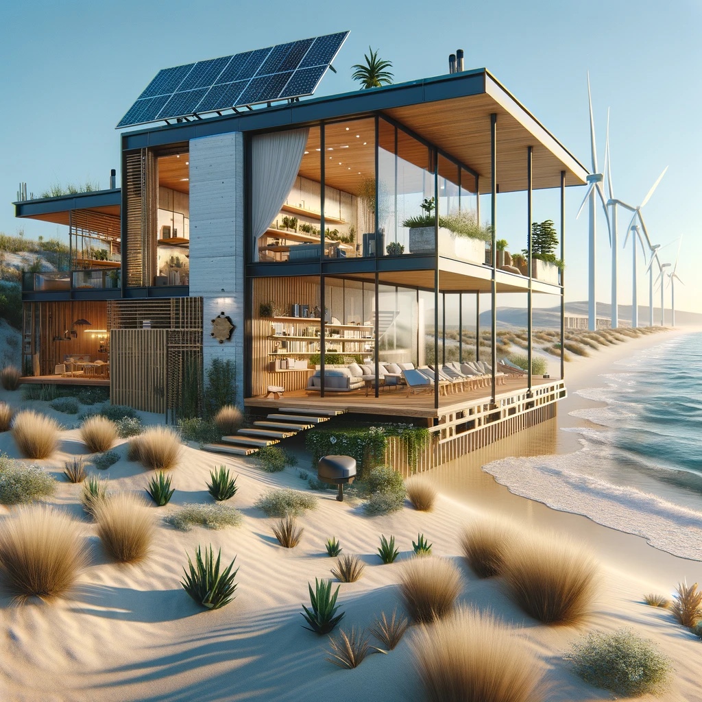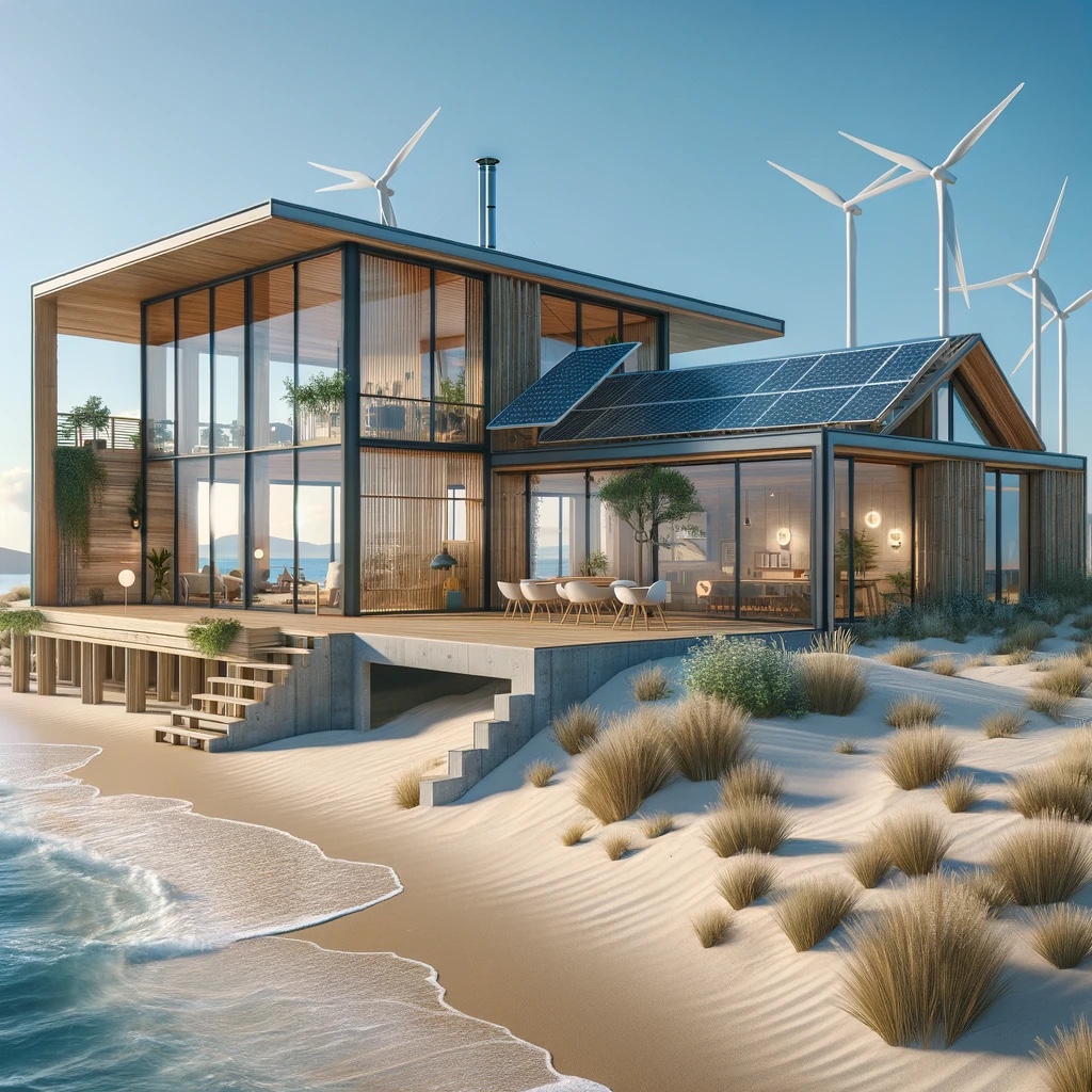 Objective: Create a futuristic house that is completely off-grid and self-sustaining, providing all necessary resources independently.